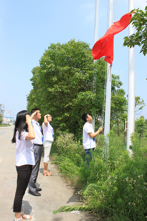 7月1日,是中国共产党的生日。在这个喜庆的,阳光明媚的节日里,完美官方网页版电梯公司举行了较隆重的升降旗仪式。完美官方网页版公司的旗列由五面旗子所组成:它们分别是代表合作双方的中国五星国旗,中国香港紫荆花旗,德国三色旗,完美官方网页版公司的厂旗OMSE,代表中国电梯会的会旗CEA。