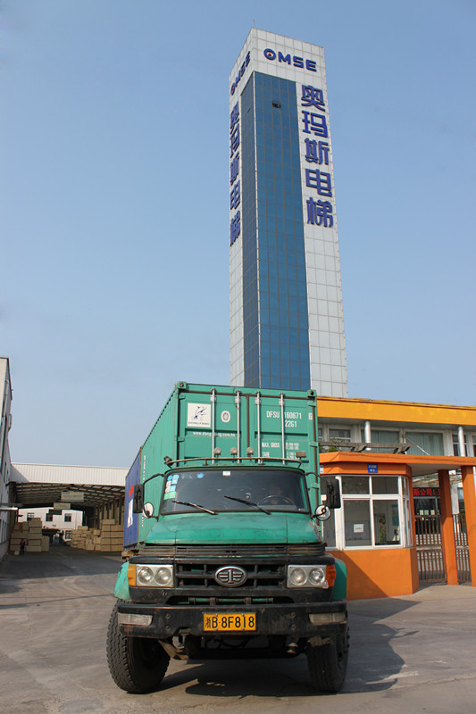 图四:出口马尔代夫的电梯装箱装车完毕后出厂场景