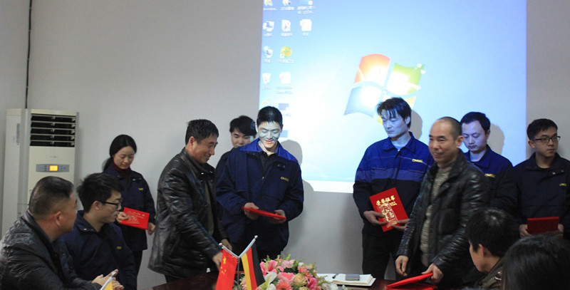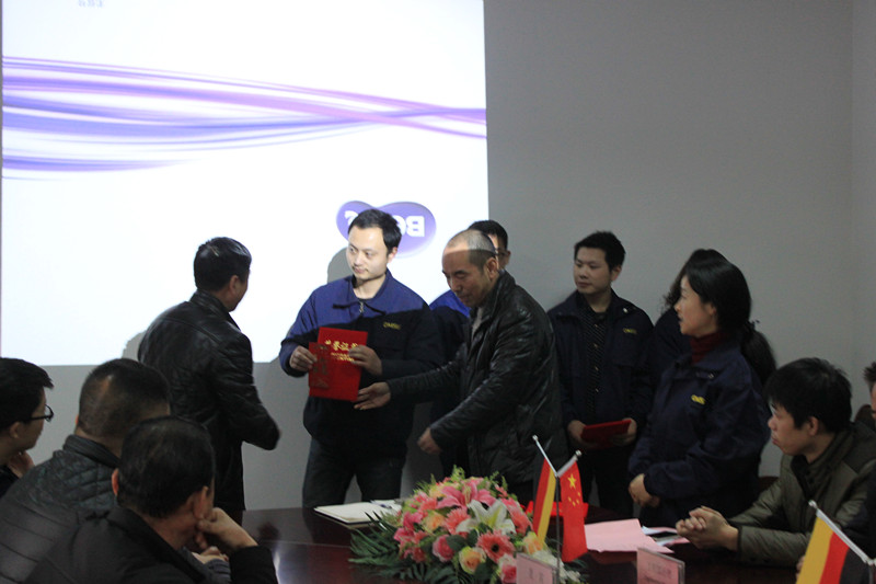 2016/2/3下午3时正,完美官方网页版公司“2015年度年终员工大会”在一楼大会议室按时召开。按大会议程,首先由潘伟荣总经理向与会员工介绍了2015年取得的丰硕业绩,明确了2016年的奋斗目标,并向与会员工及其家人提早拜年!然后由公司李金伟副总宣读了公司2016年第一号文《关于“2015年度公司级优秀员工”表彰令》(名单附下),并由公司潘总,张文斌副总向他(她)们分别颁发了荣誉证书及奖金。颁奖仪式后,10名优秀员工与公司高层领导们合影留念。