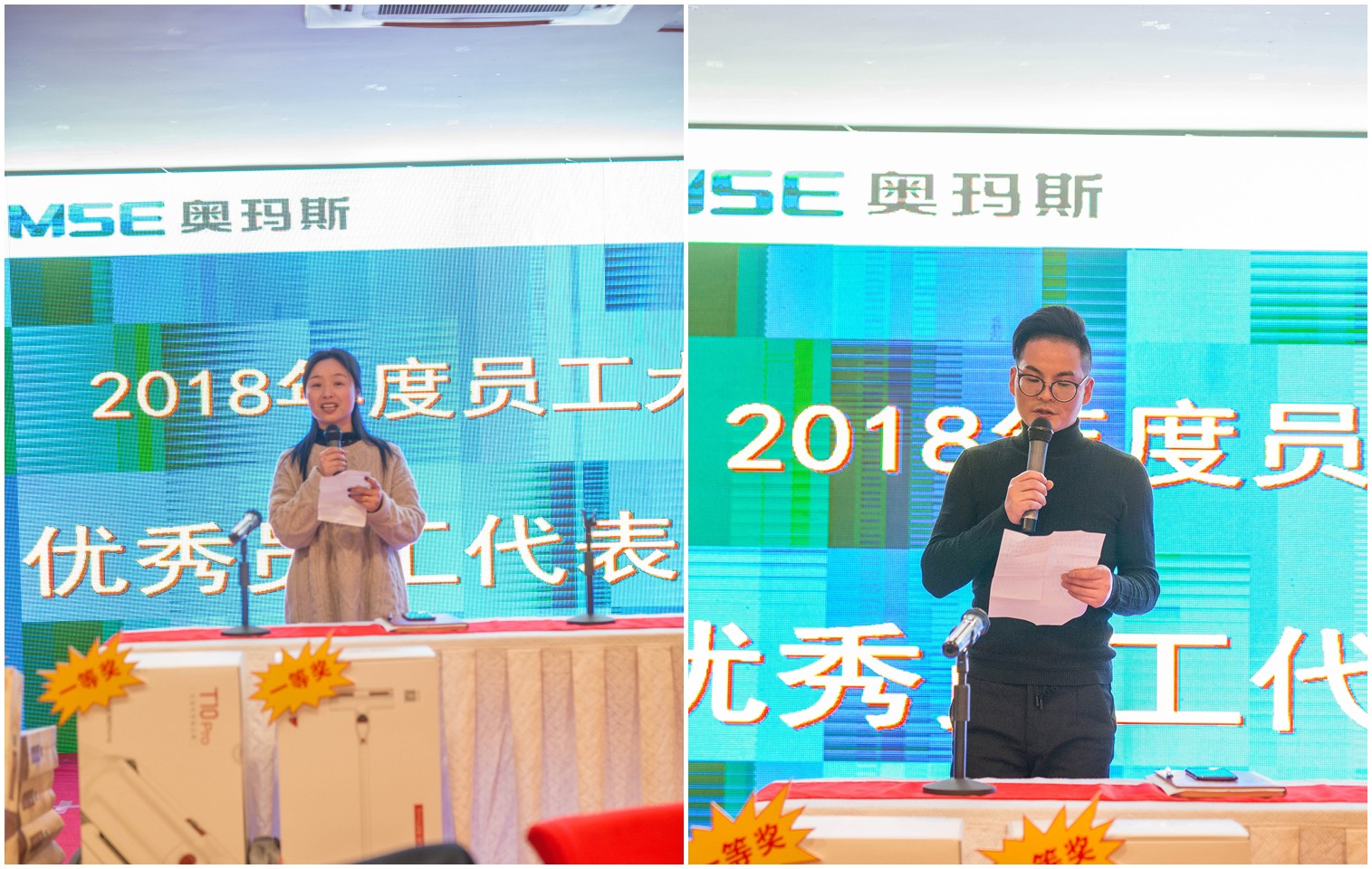 最后,由沈丽芬与张建新2位优秀员工代表分别作为完美官方网页版老员工、新员工之代表上台发表了个人获奖感言。